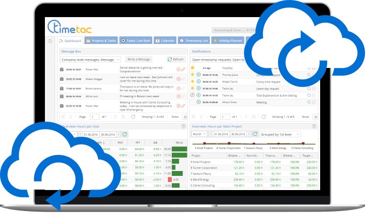 Nutzen Sie die Möglichkeit Daten aus der Stundenabrechnung direkt in bestehende Programme zur Lohnabrechnung zu übernehmen. Wichtige Kennzahlen können an die zuständigen Abteilungsleiter und die Personalabteilung per Benachrichtigung oder als Email versendet werden. Damit ist eine rasche Information und unmittelbare Kontrollmöglichkeit gewährleistet.